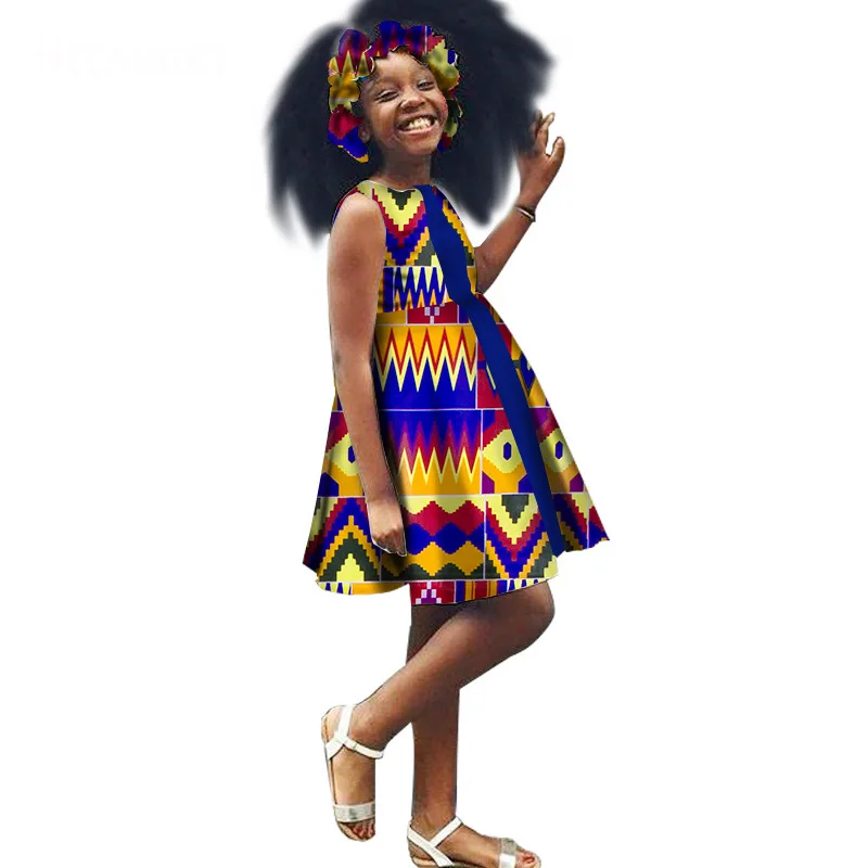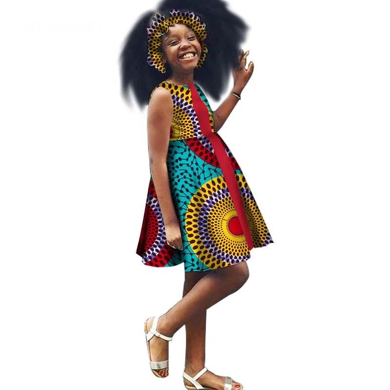 2 Pieces Set Kids Girls African Dresses With Headband African Print Dress Cute Children Party Dress Sweet African traditional