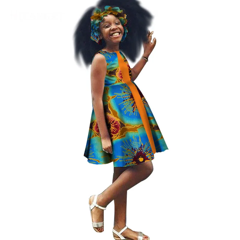 2 Pieces Set Kids Girls African Dresses With Headband African Print Dress Cute Children Party Dress Sweet African traditional